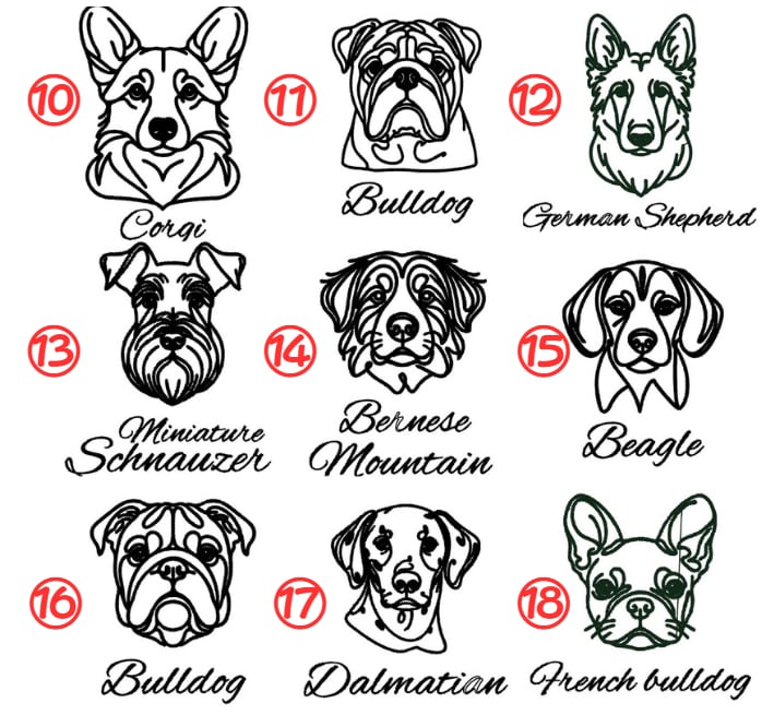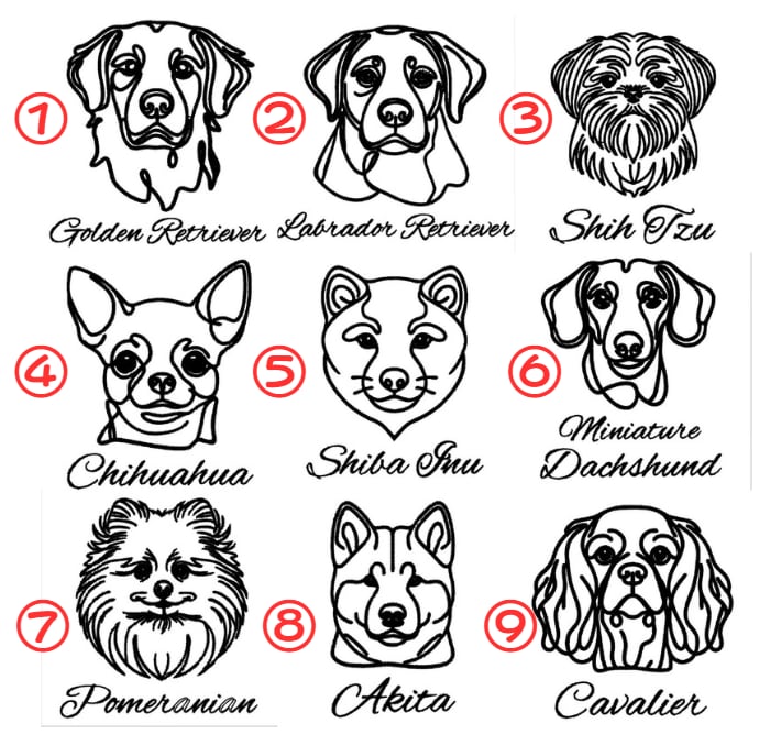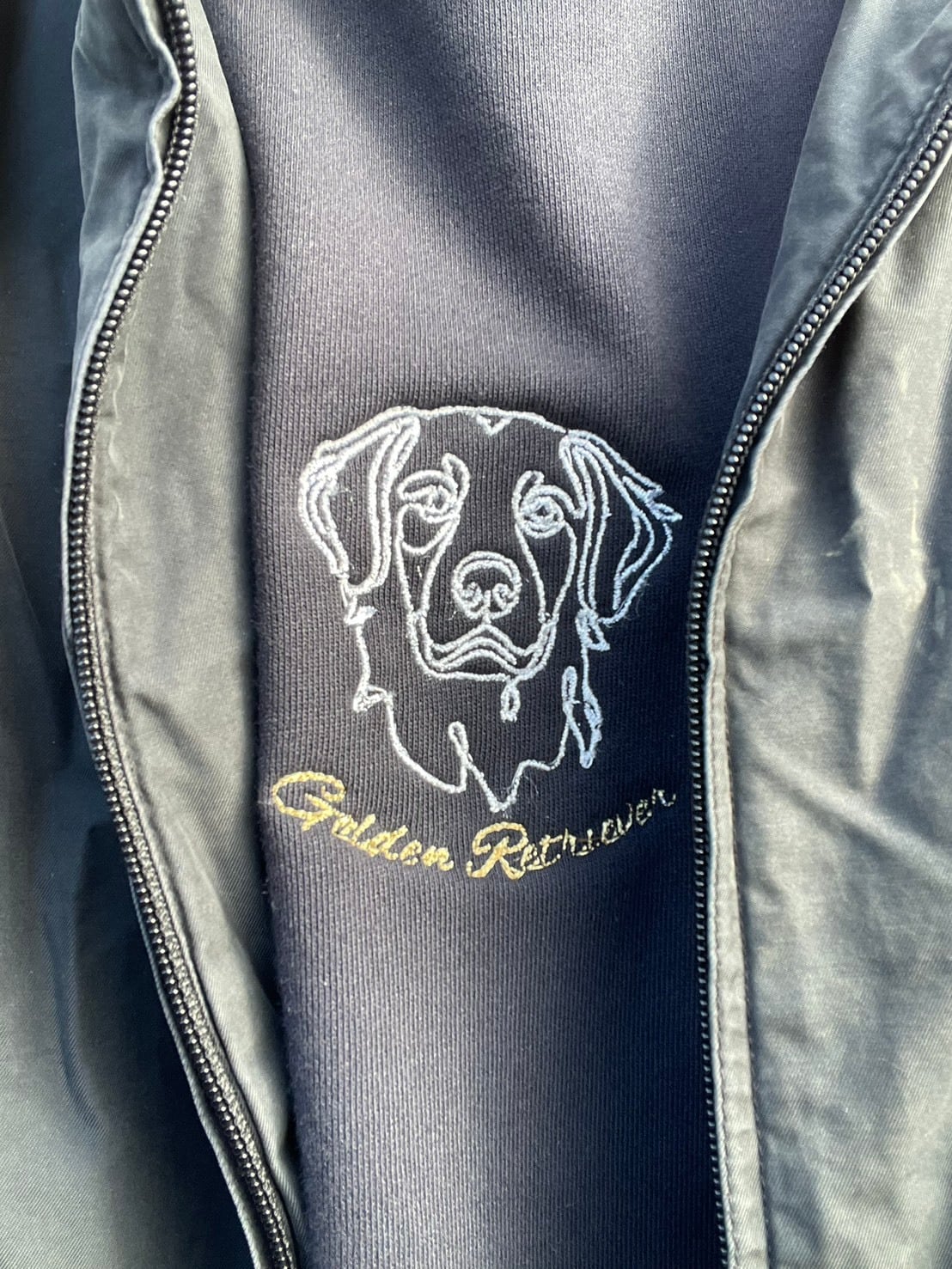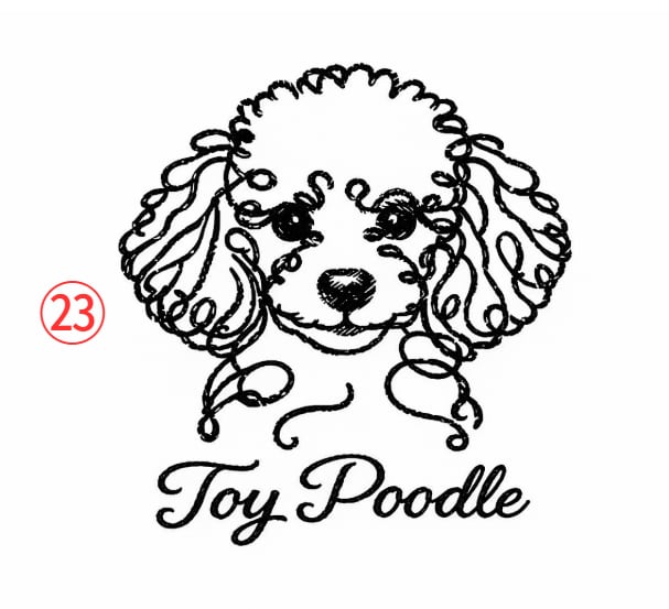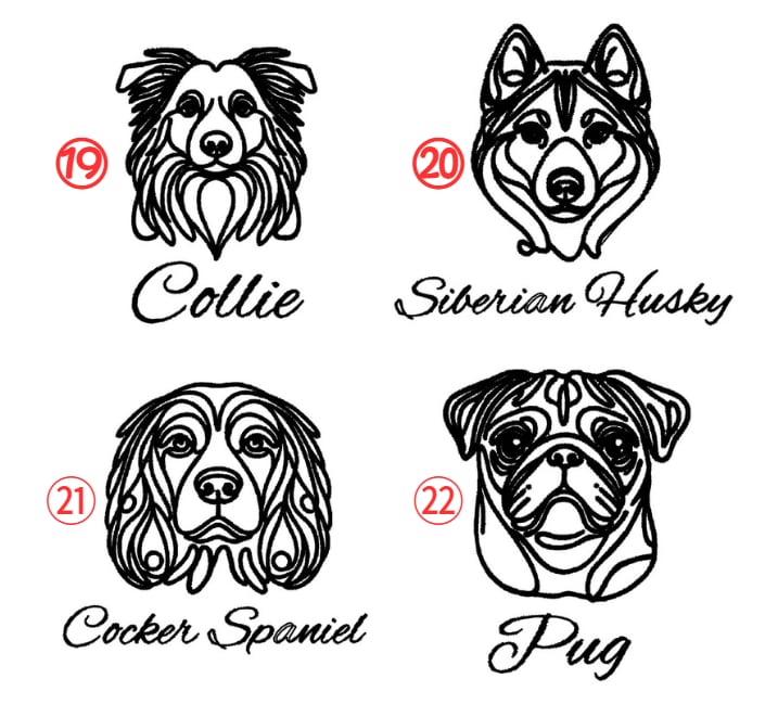 犬種名や文字部分にはゴールドカラーの刺繍糸を使用し、