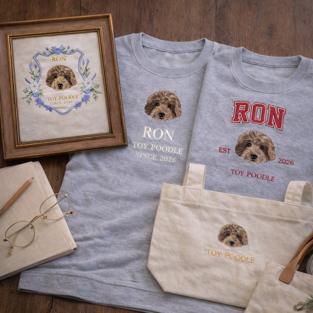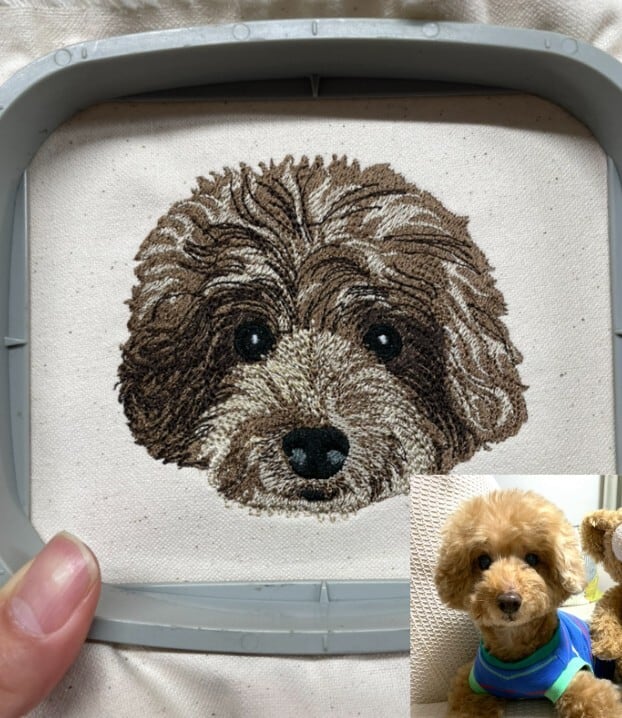 お送りいただいたペットのお写真をもとに、刺繍ならではの表現へとデザインを仕上げます。