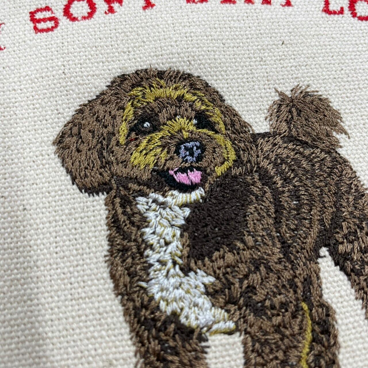 よくあるような、シンプルな刺繍、写真をプリントしたような刺繍と違い、細かな刺繍や色でワンちゃんの美しさを最大限に表現しています。