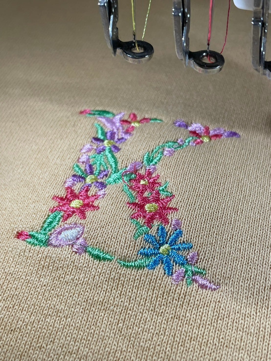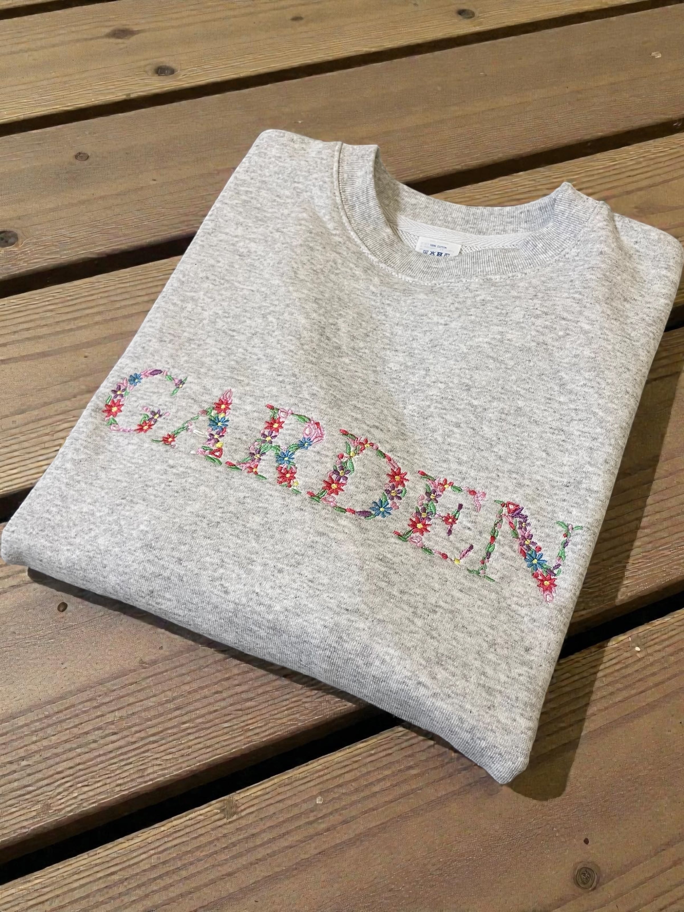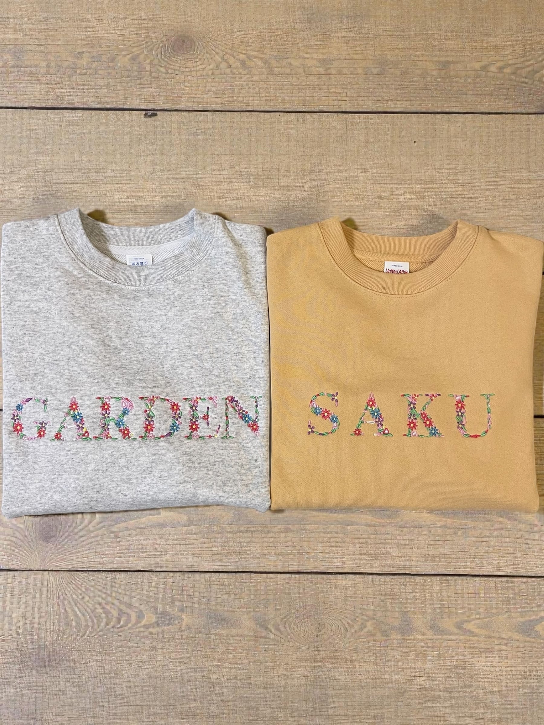 毎日着られるスウェットに、フラワーレターで特別な刺繍を。