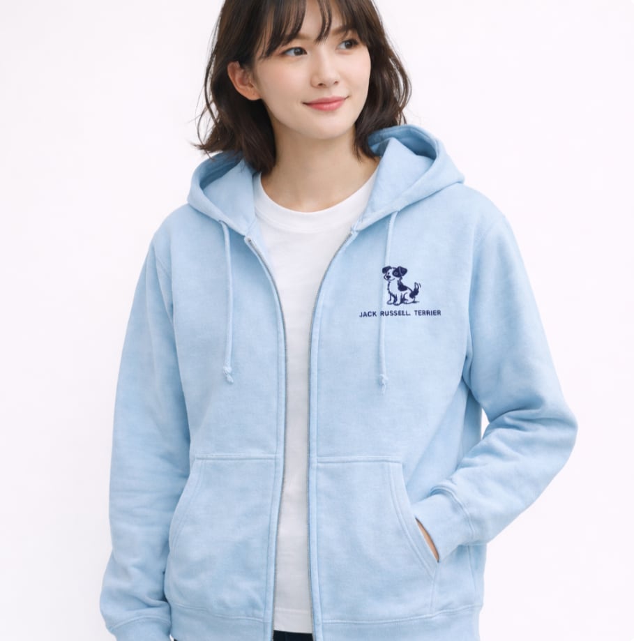 【絵本の世界の】犬刺繍ジップアップパーカー|名前カスタム対応(8.8オンス)