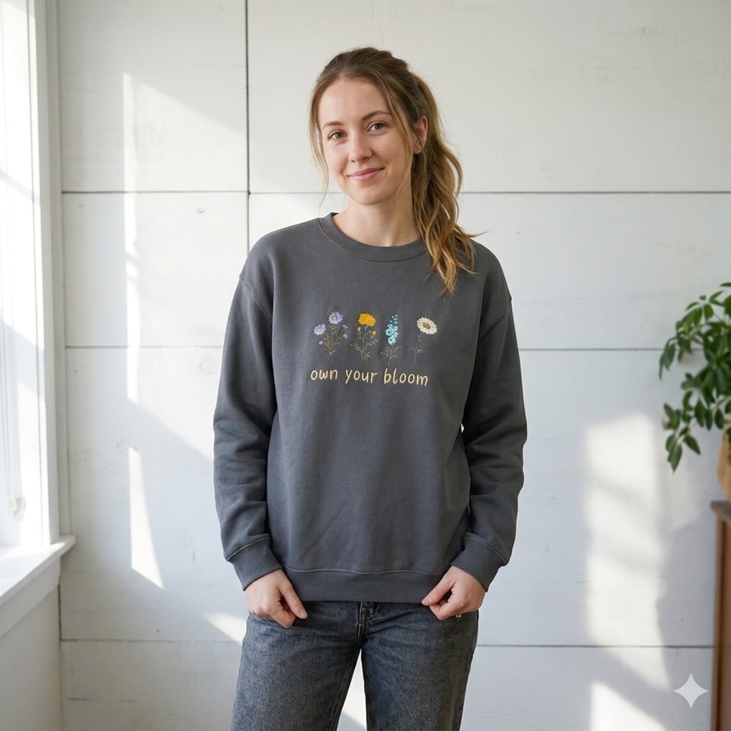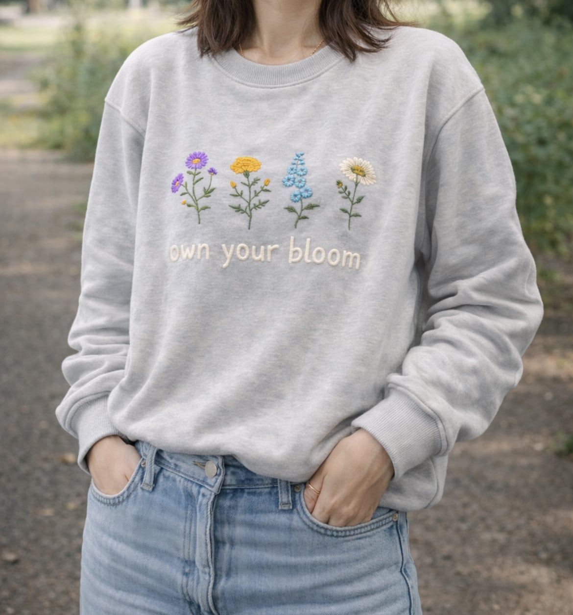【20種類以上から選べる】私だけのフラワー刺繍トレーナー(8.8オンス)