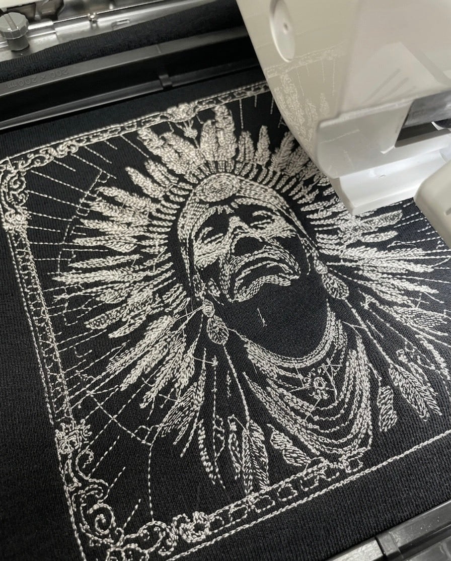 刺繍ならではの立体感と重厚感があり、プリントでは出せない“本物感”を楽しめる一着です。