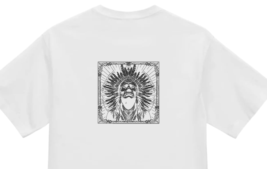 ネイティブアメリカンのスピリットからインスピレーションを受けた、バックに圧倒的な存在感のある刺繍がされているTシャツです。
