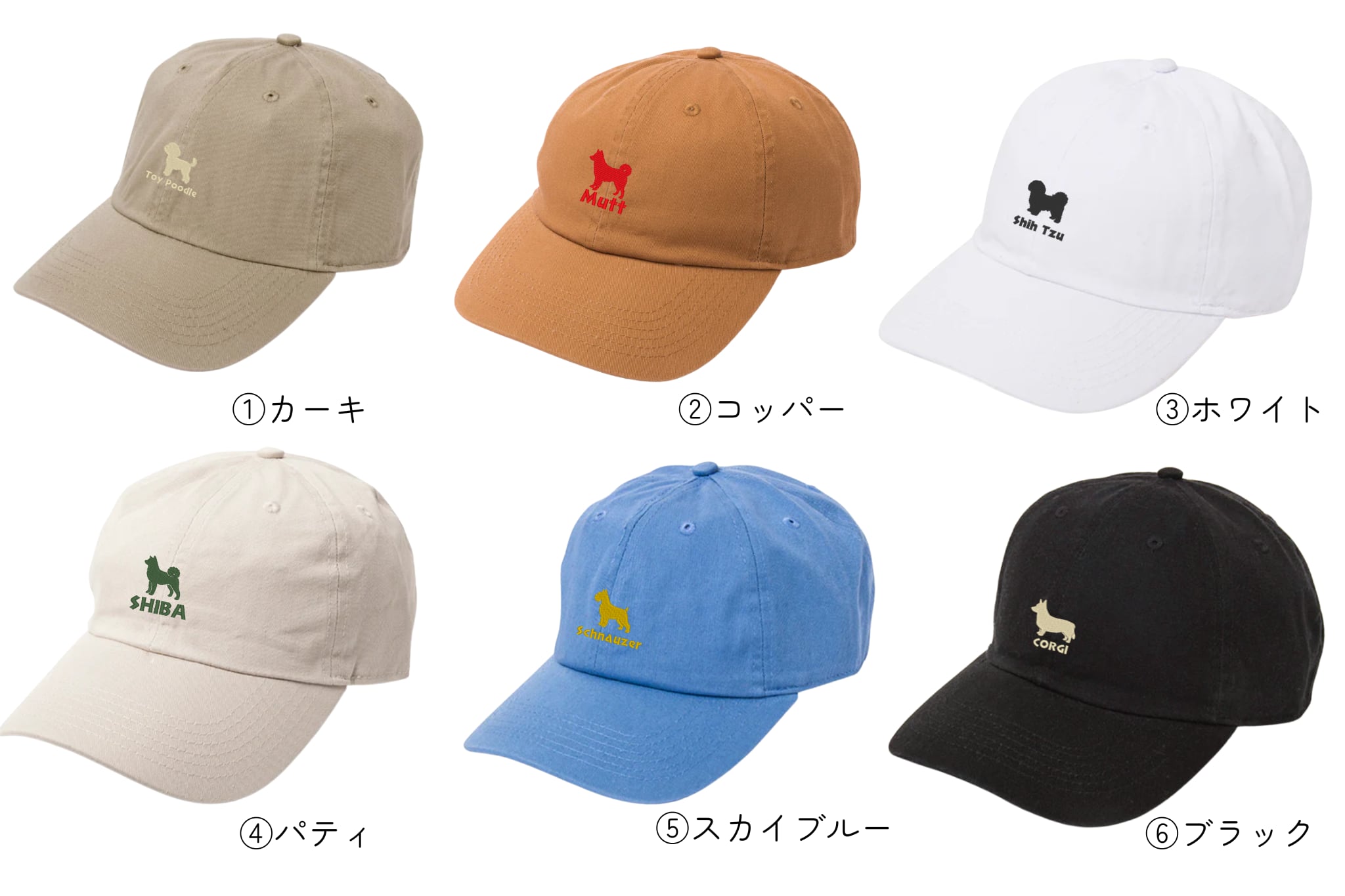 カスタムペット刺繍キャップ シルエット × ネーム刺繍(6color)