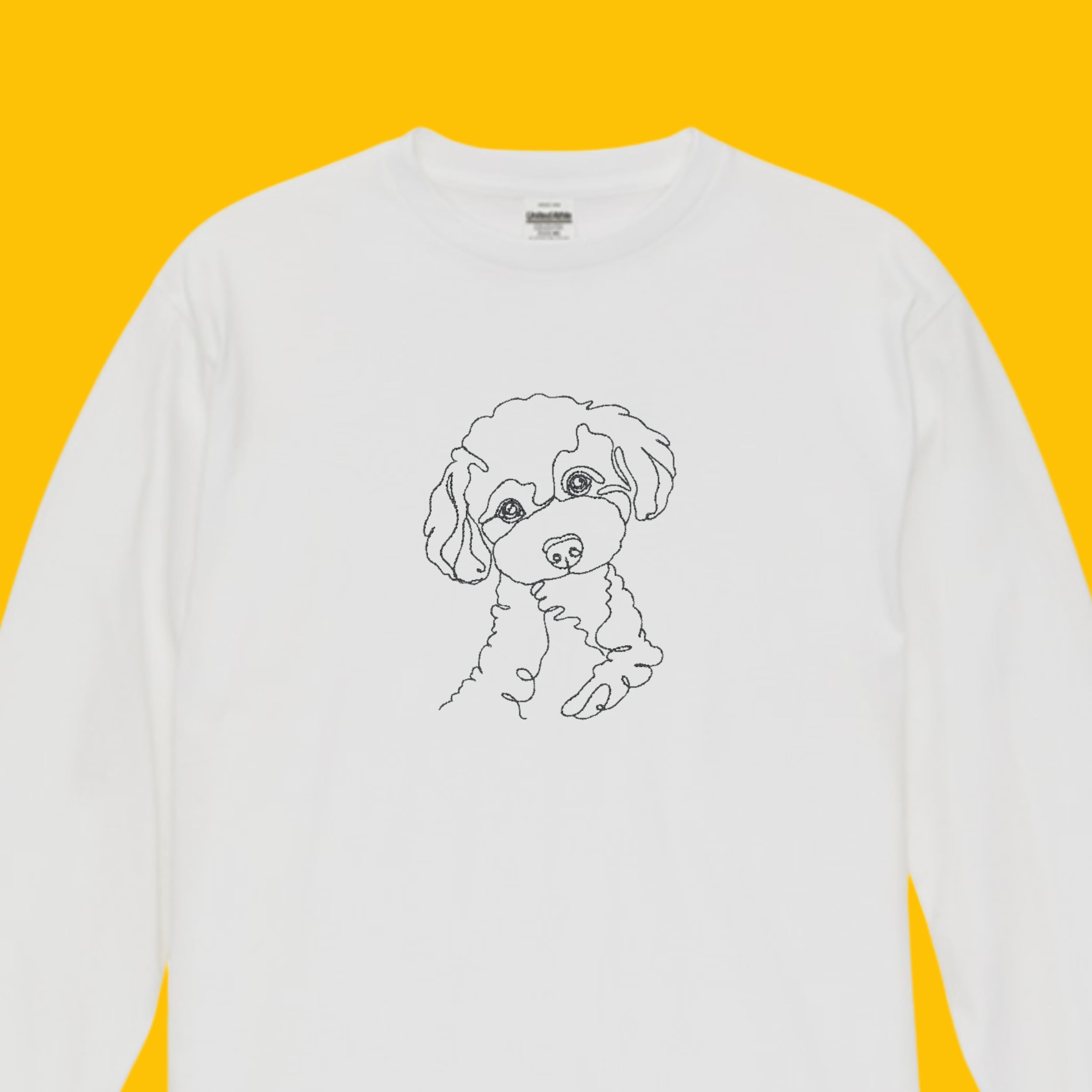 【ペット刺繍 】ラインアート刺繍 ロングスリーブ白Tシャツ(6.5オンス)